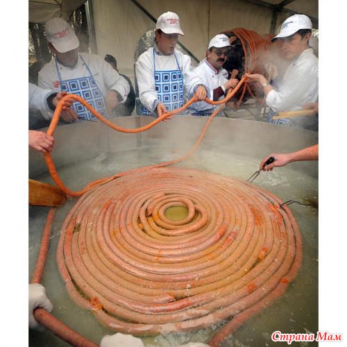 Самая длинная колбаса, 530 метров. Сделана из 400 килограммов мяса свинины. Хорватия.
