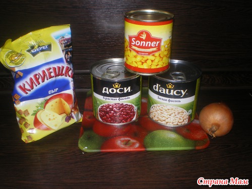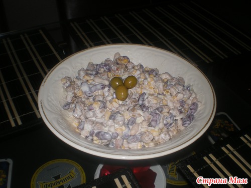 1) открываем банки с фасолью, и все на дуршлаг и промыть холодной водой.