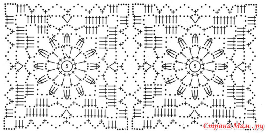 Спинка- 8 целых мотивов и 2 половинчатых.