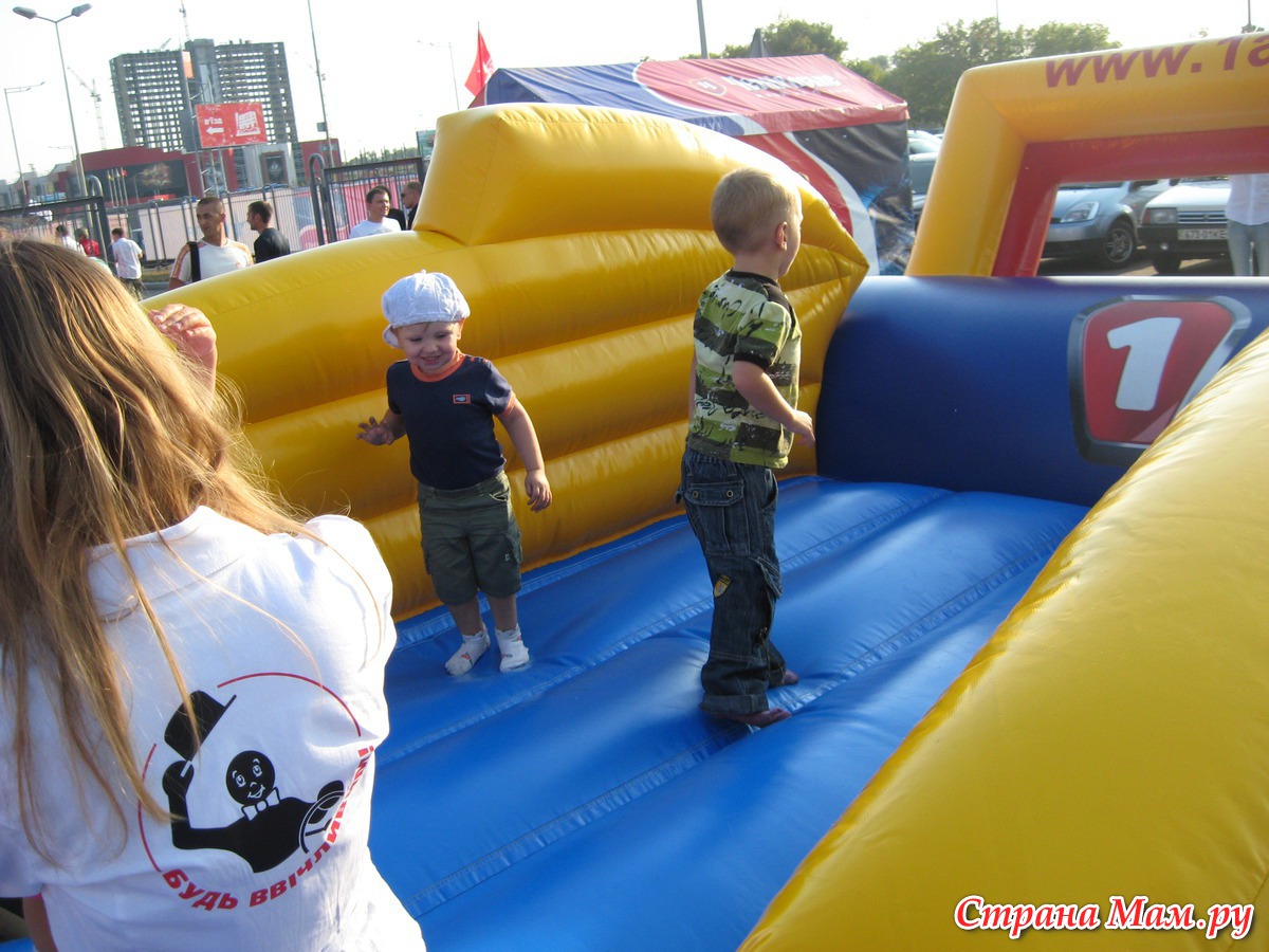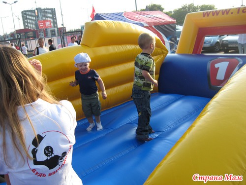 а это мы прыгаем с детками на територии автошоу(все развлечения мы опробовали совершенно бесплатно - от организаторов все)