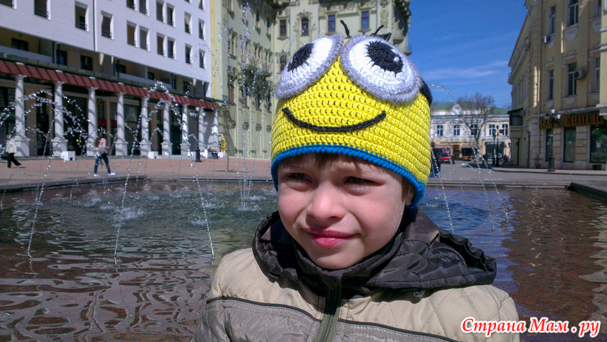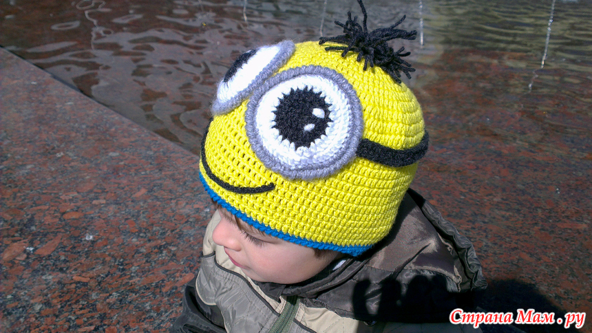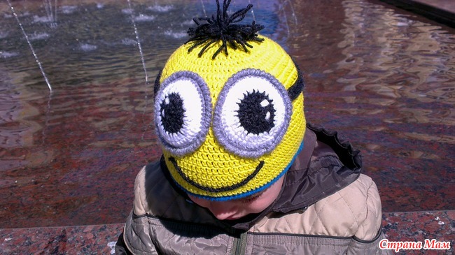 Сын заказал связать ему шапку-миньона. Два раза ра перевязала (первый раз большая оказалась), но сын зато доволен))) На улице все оглядываются, особенно дети