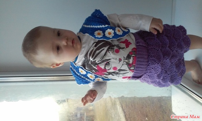 Спасибо за советы. Я думала так же, умножать длину израсходованных ниток на 2. Но за такую сумму она не купит, договорились за 300. Ромашки на болеро заказчица попросила связать сама, лично мне так не очень понравилось((((((( я бы сделала по-другому. Это болеро вяжу к юбке, которую я уже связала, юбку продала дороже, поэтому согласилась за 300. Да и нитки оставались как раз хватило, и не дорогие, рублей 50 моток. Ушло на все мотков 4, плюс белых моток. Выкладываю фото юбки.