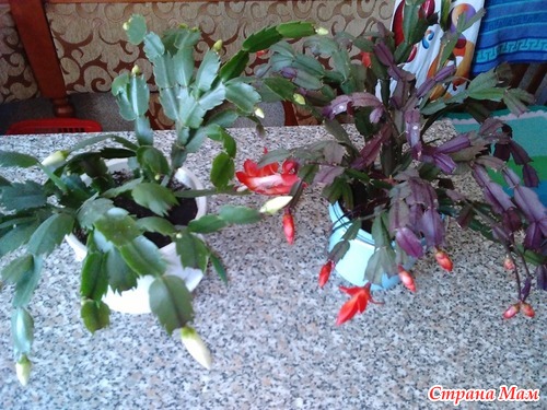 Это новое приобретение дочери. Декабрист с оранжевыми и белыми цветками.