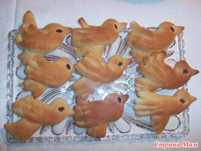 Из куска хорошо выбродившего теста раскатывается валик, нарезается на куски массой примерно 100 г. Затем раскатываются жгуты, так, чтобы один конец был тонким и гибким — головка, а все тело потолще, удлиненное, его надо слегка примять пальцами. завязываются узлом, головке придается соответствующая форма.