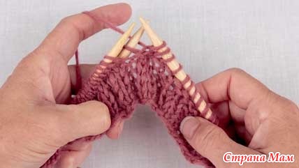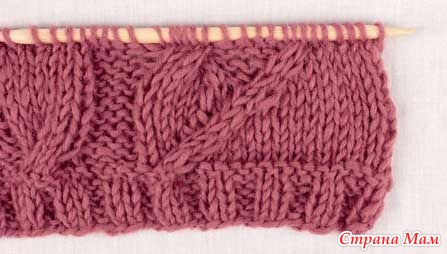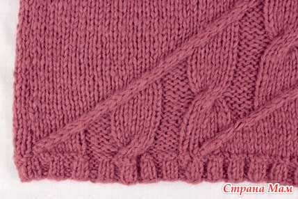 сдвигать эти 2 петли, связанные лицевой гладью, с обеих сторон на 1 петлю в каждом ряду. С правой стороны провязывать поочередно 4 изнаночных и 6 лицевых.