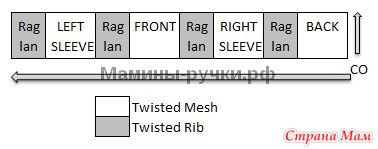 *При формировании реглана, если нет достаточного кол-ва петель до полного раппорта, вязать эти петли перекрученной резинкой.
