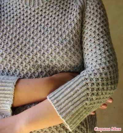 Благодаря сеточному узору, пуловер легко растягивается вовремя носки.