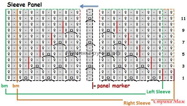 Круг. р. 3 (row 3 of Sleeve Panel): [1 изн., 1 лиц. скрещ.] до м, ум,