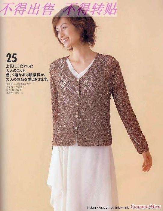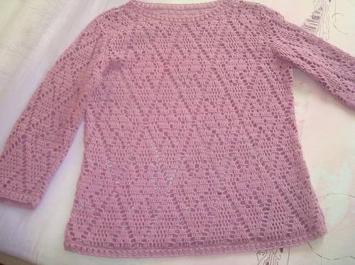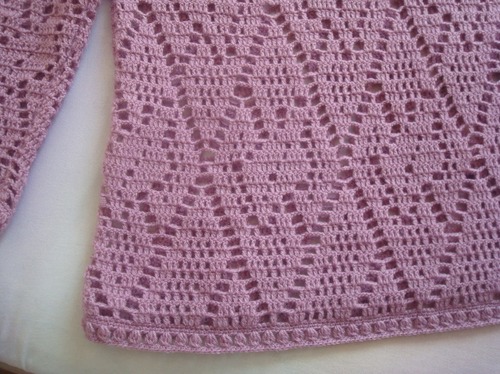 Две японских кофточки в этом стиле очень понравились. Они оригинальны: заполненные клеточки и воздушные петли идут по косой, создают диагональный рисунок. И не розочек! Для меня, во всяком случае, хорошо!