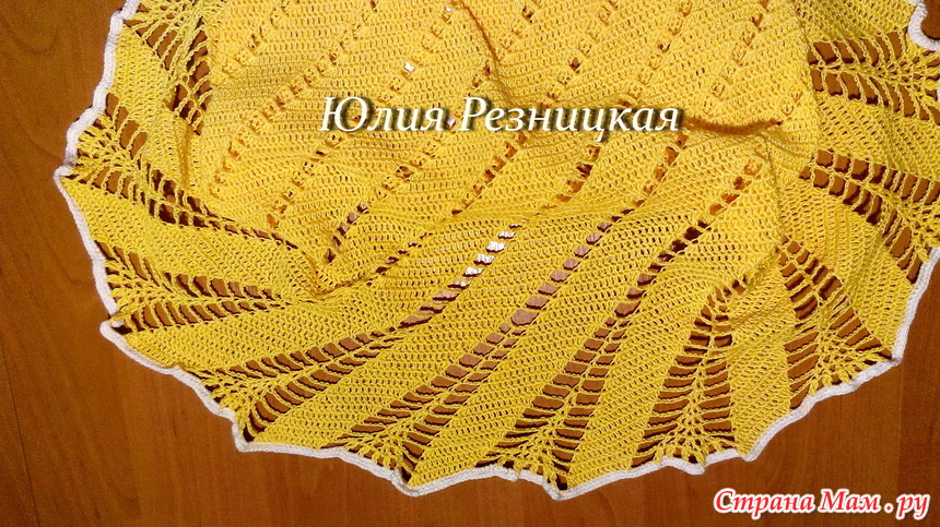 Расход пряжи - 3 мотка желтого и 0,5 мотка белого на обвязку.