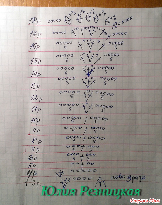 Верхняя часть юбки. Вязала 27 рядов по этой схеме. Затем вязала по схеме нижней части.