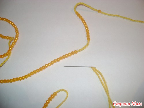 нанизываем бусины на нить которой будем обвязывать