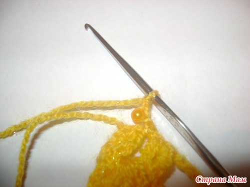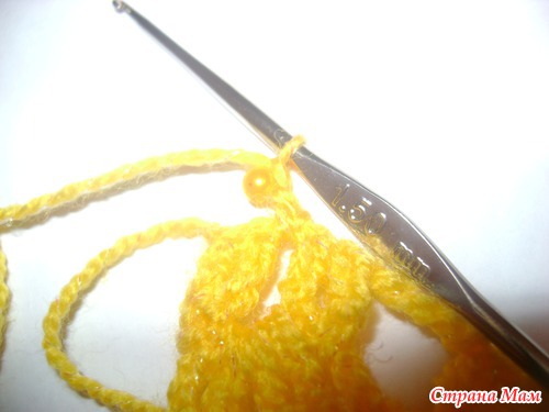 затем воздушную петлю к ней подтягиваем бусину