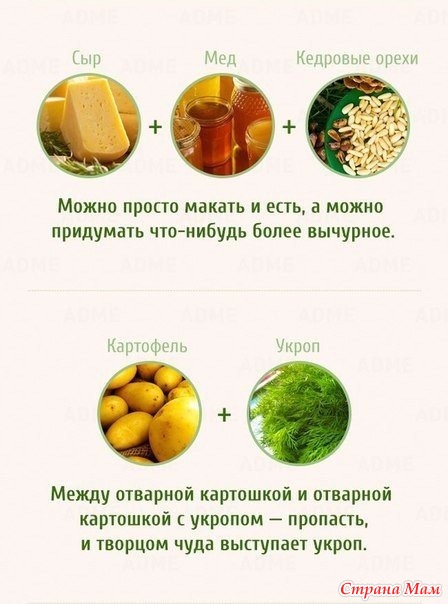 Например, груша и голубой сыр; свекла, козий сыр, орехи; рыба и фенхель; картофель, мускат; свинина, семена фенхеля (только я эти семена не видела никогда); дыня и ветчина. А вот утку с апельсинами делать пока не взялась - по рецепту канитель та ещё.