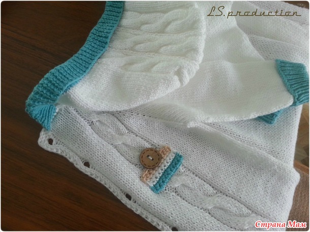 , он связан без швов!!!шапочка, пинетки и комбинезон-слип связан из пряжи Alize Bella - 100 % хлопок. Пледы тоже из натурального хлопка потолще. Использовала спицы+ крючок. Узоры самые простые - лицевая гладь и жгут обыкновенный