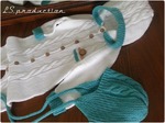 шапочка, пинетки и комбинезон-слип связан из пряжи Alize Bella - 100 % хлопок. Пледы тоже из натурального хлопка потолще. Использовала спицы+ крючок. Узоры самые простые - лицевая гладь и жгут обыкновенный