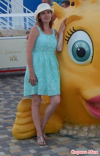 вот мой промежуточный вариант. Выгуливала на море, очень удобно и свежо в нем. Платье легкое. Пока выглядит так, т.к. собиралась вязать сразу в пол, поэтому слишком широко по низу, но хотелось его уже одеть, поэтому срочно придумала лямки и одела. В дальнейшем есть в планах сделать рукавчики и довязать длину юбки. Но это уже к следующему году.