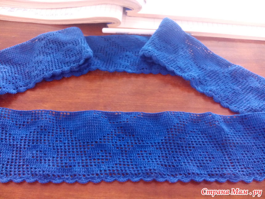 Первый моток извязан, высота 11.5см (21 ряд), сетка 1х3