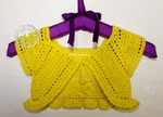 Израсходовала весь моточек и так как не хватало пряжи, то низ сделала без рюша.