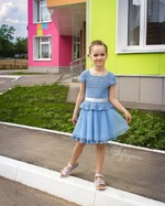 Как и у многих из вас, в преддверии выпускного, встал вопрос о наряде. Я долго над этим вопросом не раздумывала - покупать или самой сделать? Как то оно само собой в голове твёрдо укрепилась мысль, что, конечно же, сделать самой. Тем более, что давно мне нравилась идея одного популярного платья - вязаный верх и юбка из органзы.