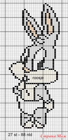 А кому как удобно. Я вышивала поверх вязаного изделия. Не люблю протяжки во время вязания. А подруга моя приловчилась вывязывать в процессе танца. Главное, не промахнуться в подсчете клеточек.