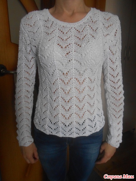 Вооружившись спицами №3 и узором "ажурная ёлочка" я стала обладательницей новой кофточки.