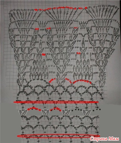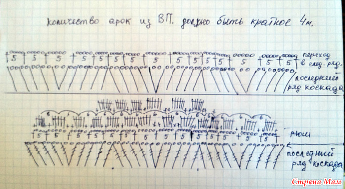 Далее если у вас ниточки очень тонкии и ширина яруса кажется вам недостаточной прилагаю схему дополнительной оборки, которую также можно использовать для украшения лифа, бретелек, либо подвязать к самому нижнему ярусу тоже неплохой вариант