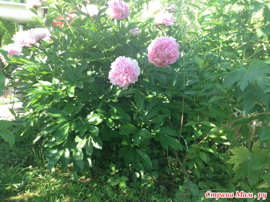 А у меня вот таких три цветка всего было. Первые в моей жизни пионы! Купила и посадила я их 2 года назад. Правда, ожидала 3 разных цвета, а оказались все одинаковые бордовые. Все равно обалденные. А у автора просто шикарные!