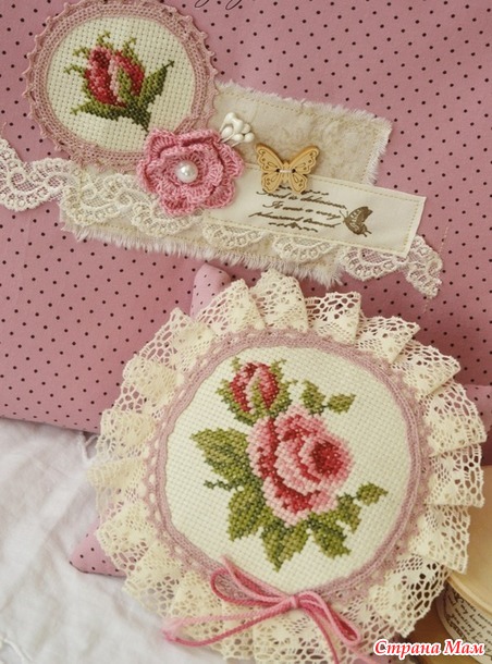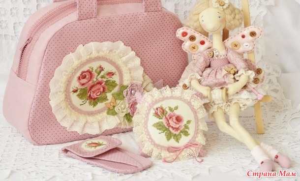 Добрый день! Сегодня хочу показать подборку изделий, вышитых и сшитых мною в различное время. Объединяет эти изделия вышитые винтажные розочки, которые придают изделиям романтичности и немного шебби-шика.