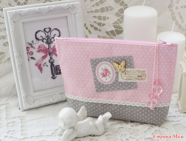 Мешочек для белья и косметичка для нежной романтичной особы. Один и тот же элемент вышит дважды. Очень нравится сочетание серого и розового)))