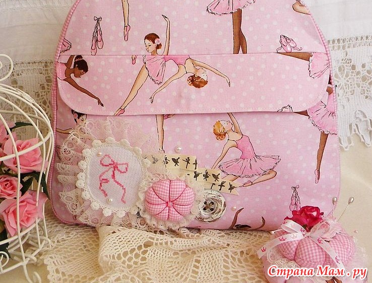 А эту сумочку шила для рукодельницы - любительницы балета. Поэтому и вышивка и рисунок ткани соответствует теме балета. Только розочек нет))