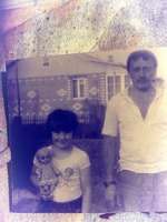Волосы белые короткие. н а фото я с папой, мне лет 7