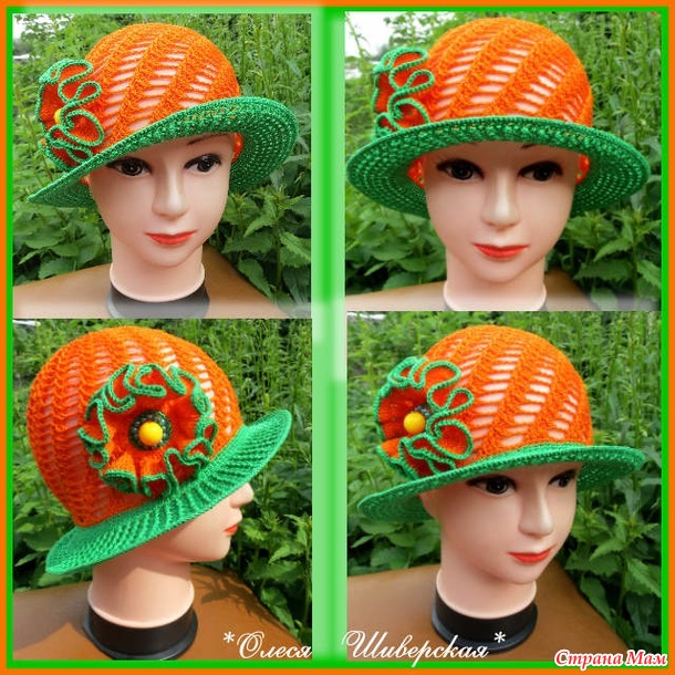 Так как вязала тонкими ниточками, немного изменила- увеличила размер донышка и поля по-другому сделала. Вязала из пехорки "Успешной" (чуть более 100г), крючок №2.