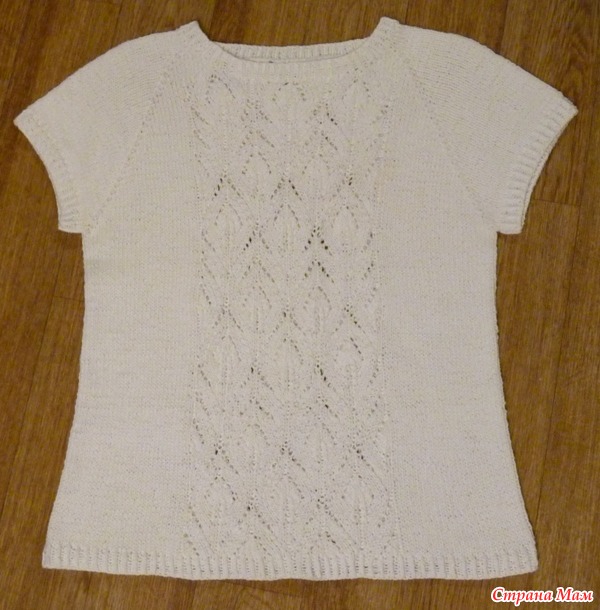 Связала себе топик из 100% хлопка "ЖАСМИН", цвет "отбелка" троицкой фабрики. 280 м в 100гр. Вязала регланом СВЕРХУ, а как хорошо узор получился