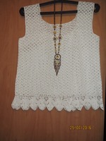 Очень давно мне хотелось связать себе белую летнюю кофточку. Чтобы, как говорится, и в пир и в мир. Нитки лежали давно, все руки до себя не доходили. Но дошли. Нитки использовала мерсеризированый хлопок (без этикетки), но по ощущениям где-то 572 м в100 граммах, крючок 1,6 Тулип.