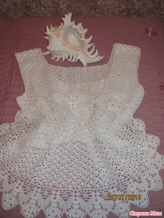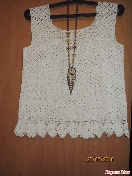 Очень давно мне хотелось связать себе белую летнюю кофточку. Чтобы, как говорится, и в пир и в мир. Нитки лежали давно, все руки до себя не доходили. Но дошли. Нитки использовала мерсеризированый хлопок (без этикетки), но по ощущениям где-то 572 м в100 граммах, крючок 1,6 Тулип.