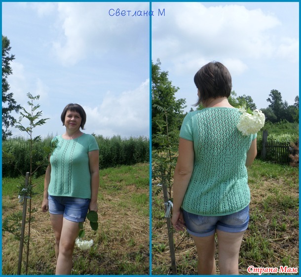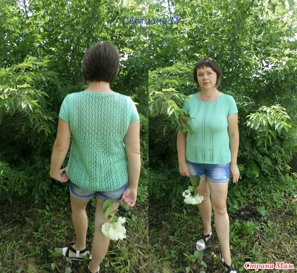 Связала себе обновку, кофточку "с изюмом" а именно ажурной спинкой и более лаконичным передом))
