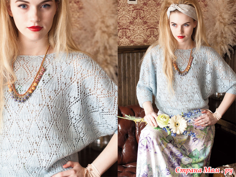 Ажурный пуловер с рукавами доломан (летучая мышь)