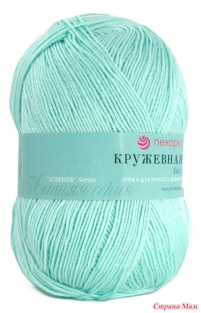 Пряжа Пехорка Кружевная 50 гр. 280 м. Акрил-100%. Мятного цвета ушло 4 мотка. Светлая бирюза - 3,5 мотка.