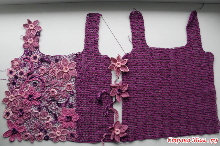 Тут отлично видно, как я разделила майку на кружевную и филейную части.