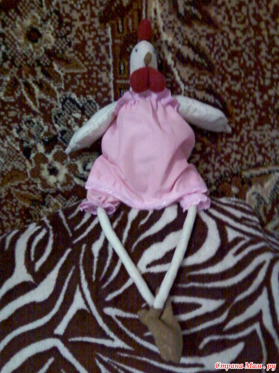 После обретения нашей курочкой форм необходимо потайным швом зашить отверстия через которые набивали крылышки и ножки(голени).