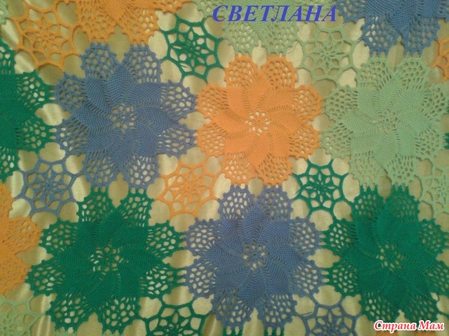 а это накидка на подушку вязала из Семеновской пряжи CHERRY, 100% вискоза, 585/100 крючок №1,25
