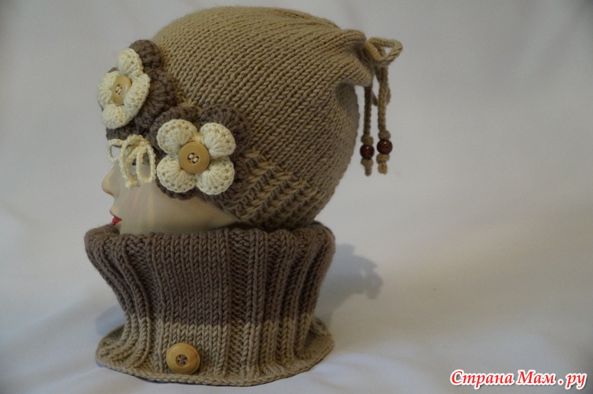 Все мы уже полюбили эту очаровательную девочку и её великолепный комплект ( шапочку со снудом ).