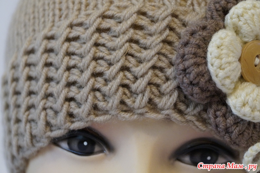 На объём головы 49 см я набрала 70 + 2 ( кром ) петель. И вязала разными вариантами отделку шапочки, но ничего мне не понравилось, кроме одного описания, которое я нашла здесь, на наших просторах сайта.
