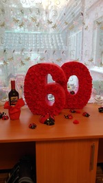 Второй мой опыт, цифр для юбилея ( из салфеток и подарочной бумаги), в 6-ке прячется вино,