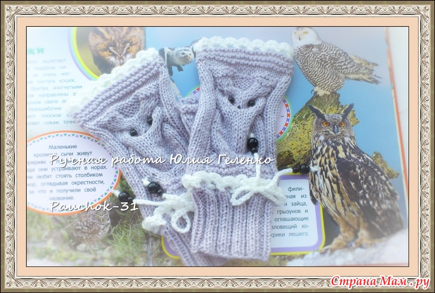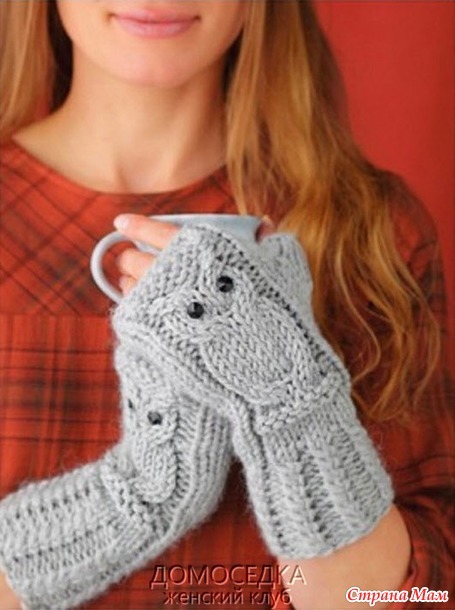 Связались у меня митенки с совами... Давно хотела попробовать связать сову, да не знала на чем связать...