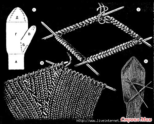 когда связали нужную длину, вяжем основным узором, когда связали до основания большого пальца (такое количество прибавок чтобы пальчик вошел ) как делать прибавки - добавлю в пост несколько фото для наглядности, петли которые относятся к большому пальцу необходимо закрыть и продолжать вязание по кругу на нужную длину.