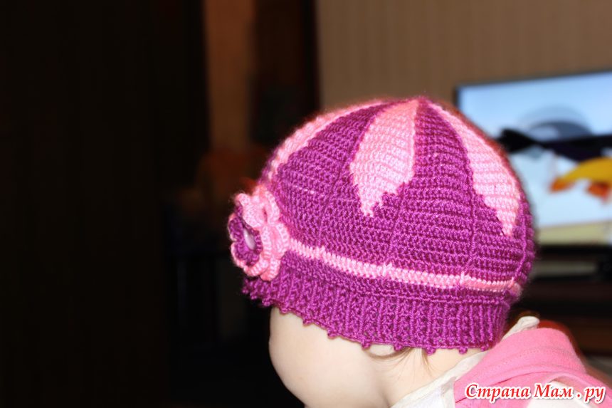 Вот такой берет я связала для своей малышки. Я использовала пряжу Аделия Оливия и крючок № 2. Расход примерно 100гр.