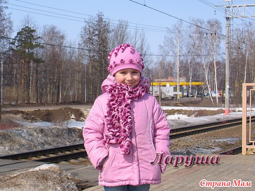 Спасибо . Пряжа - розовая - меринос итальянский, пёстренькая - "Кашмира файн" от Ализе (Турция). Для шарфика брала за основу вот эту модель http://www.vilushka.ru/VK/sharf.html , но поизменяла маленько в процессе работы (ну, как обычно )