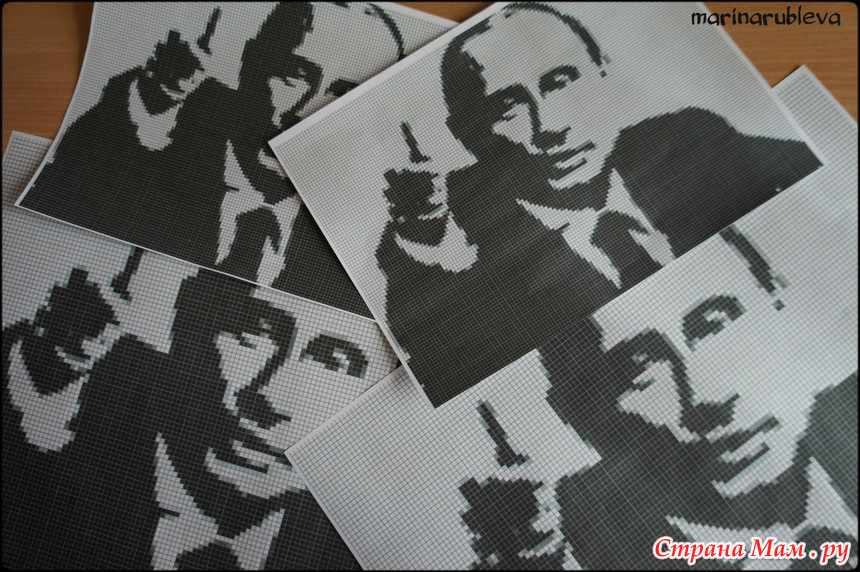 Потом нашла я монохромное изображение и в первой попавшейся программе которую выдал поисковик сделала схему. Муж от радости пораспечатал много вариантов. Вот как это было - Поделиться